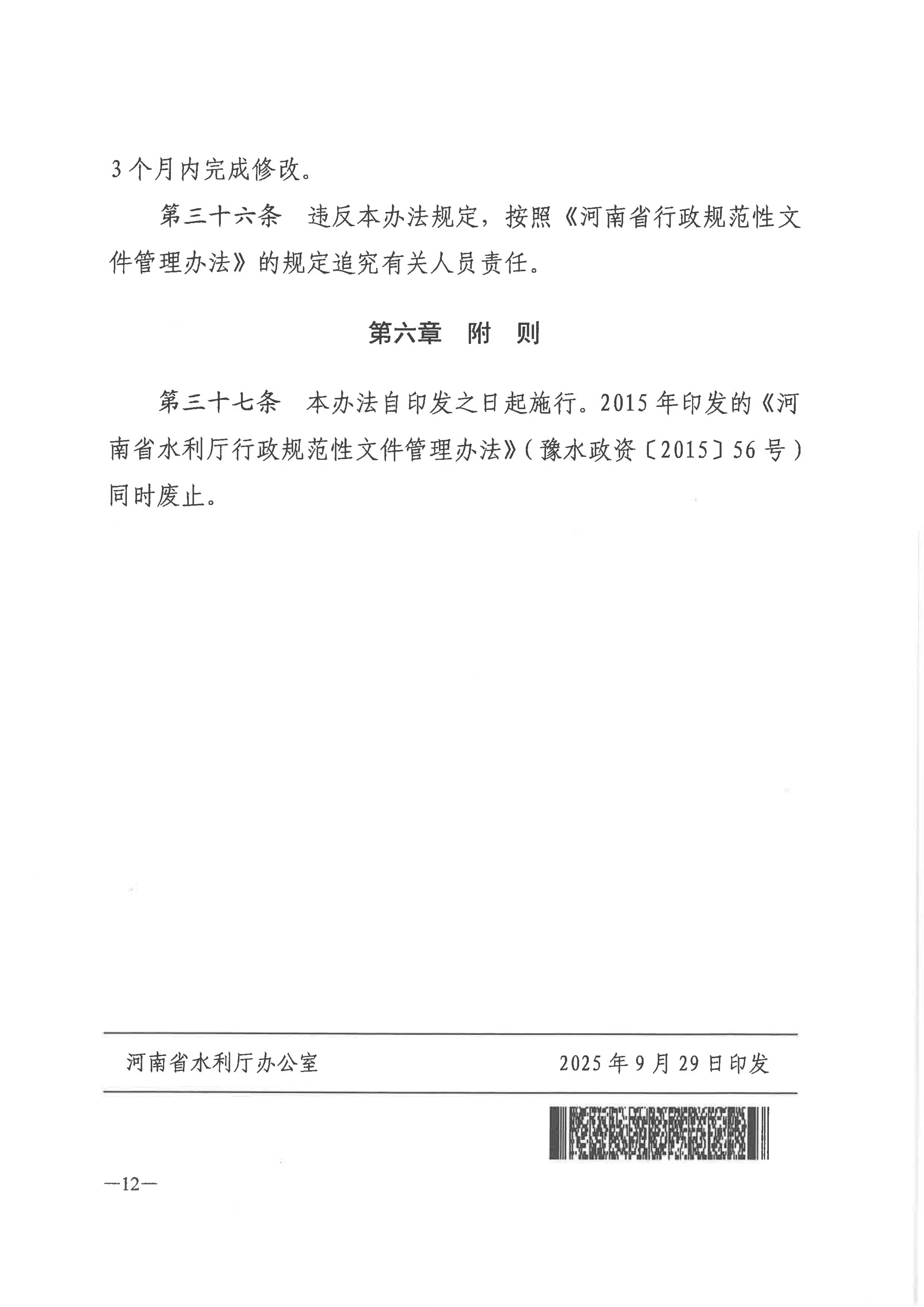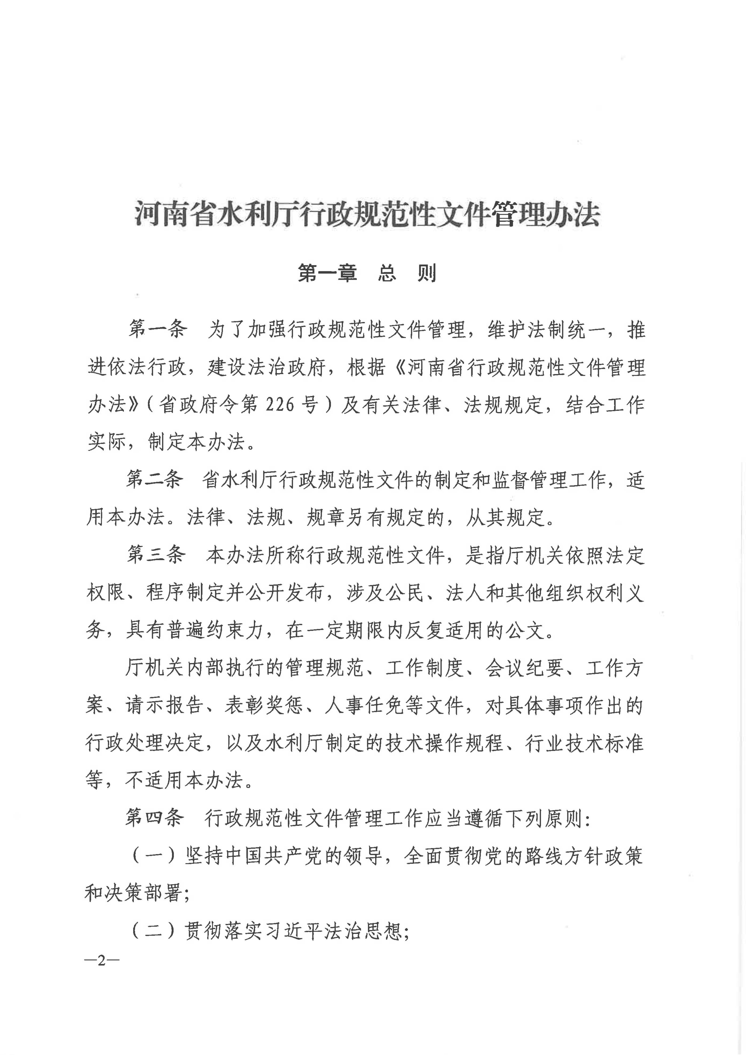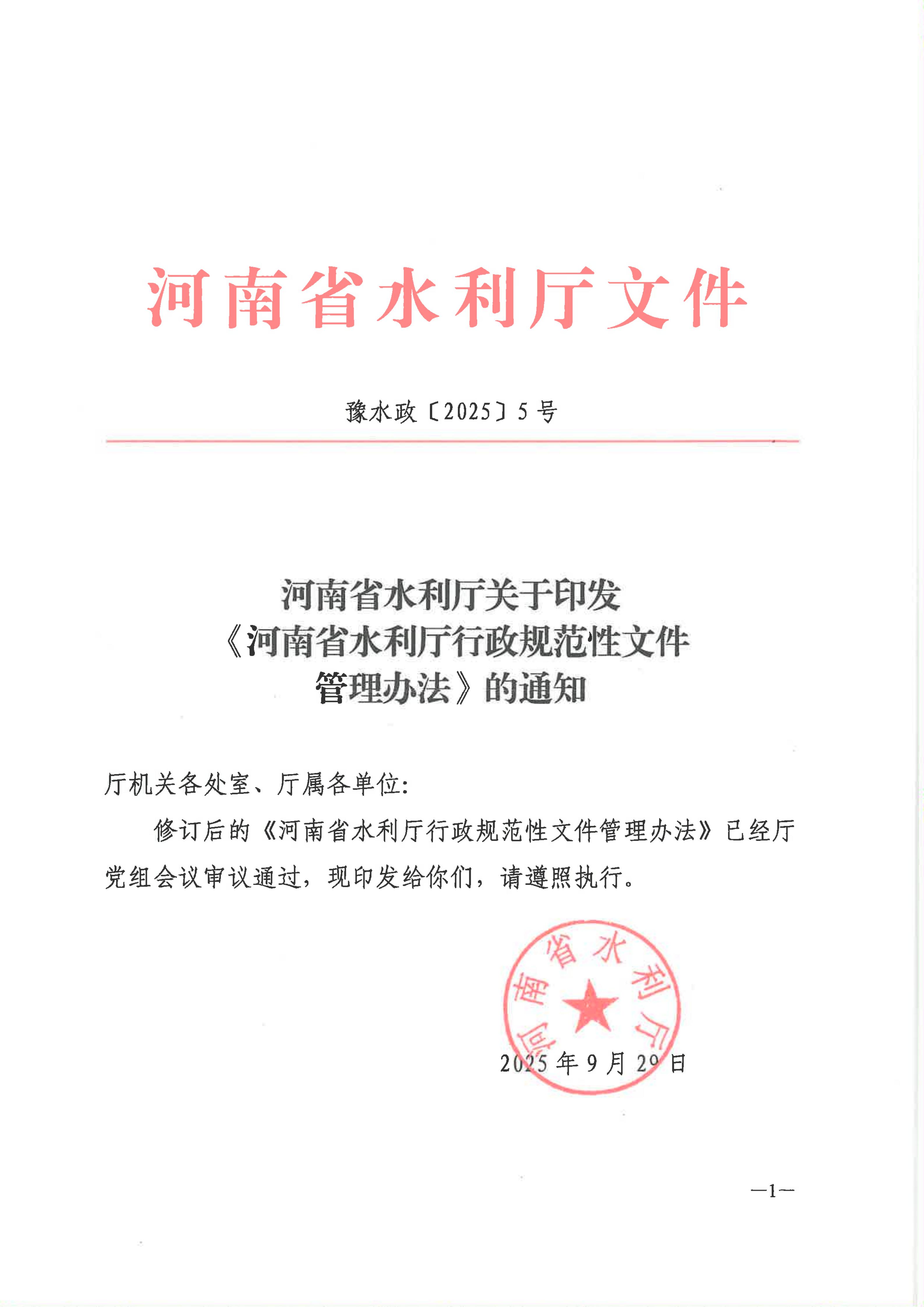 河南省水利厅关于印发《河南省水利厅行政规范性文件管理办法》的通知